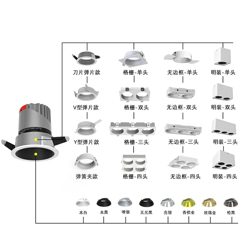 LED ceiling lights are lighting fixtures embedded in the ceiling, utilizing LED light sources. They are characterized by energy efficiency and provide even, soft light, making them ideal for shopping malls, hotels, jewelry counters, and upscale residential settings. The light source is concealed, providing no irritation to the eyes and maintaining the overall uniformity of the architectural decoration. The LED ceiling lights are designed with highly thermally conductive aluminum alloy and patented structural technology, ensuring excellent heat dissipation and a long service life. When installed, they need to be embedded in the ceiling, and the hole size must match the size of the light body. LED ceiling lights are an ideal replacement for traditional tungsten halogen and metal halide lamps, suitable for key lighting locations such as car exhibitions, jewelry displays, high-end clothing, professional windows, and counters.