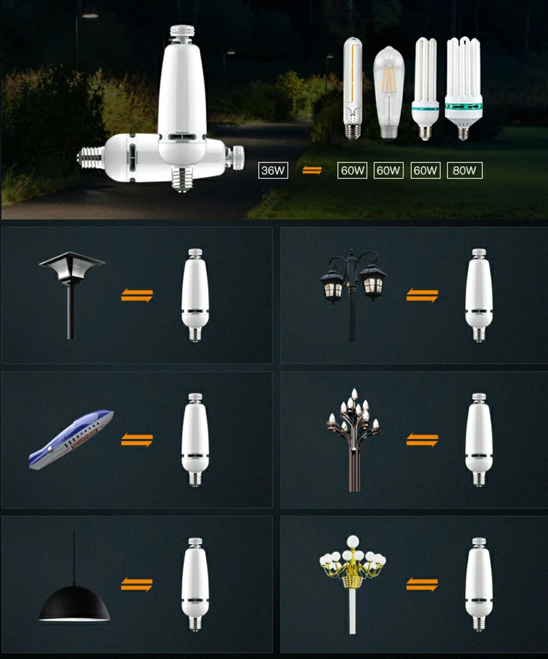 IP65 waterproof LED corn bulb 36W 40W Yulan lamp, Chinese street light source E40 E27 lamp, courtyard led corn light bulb