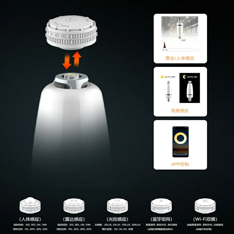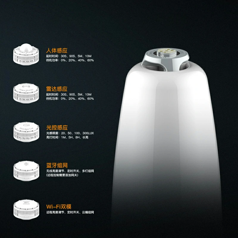 | Luminous Flux | 130-150lm/w | Function | Intelligent temperature control version human body sensor radar sensor light control sensor Bluetooth networking WIFI dual-mode module |