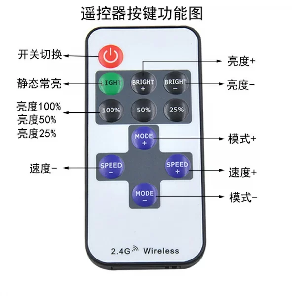 Light color: warm white,neutral white,cool white,tri-color change,red,blue,pink,green,yellow,purple