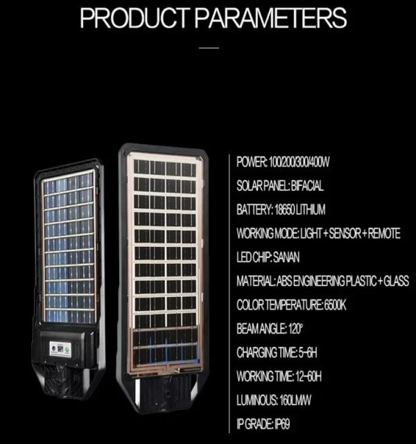 2023 New led lights Solar Street Light All in One Integrated Street Lamp with Double Sided Solar Panel Super Thin Bifacial Light LED