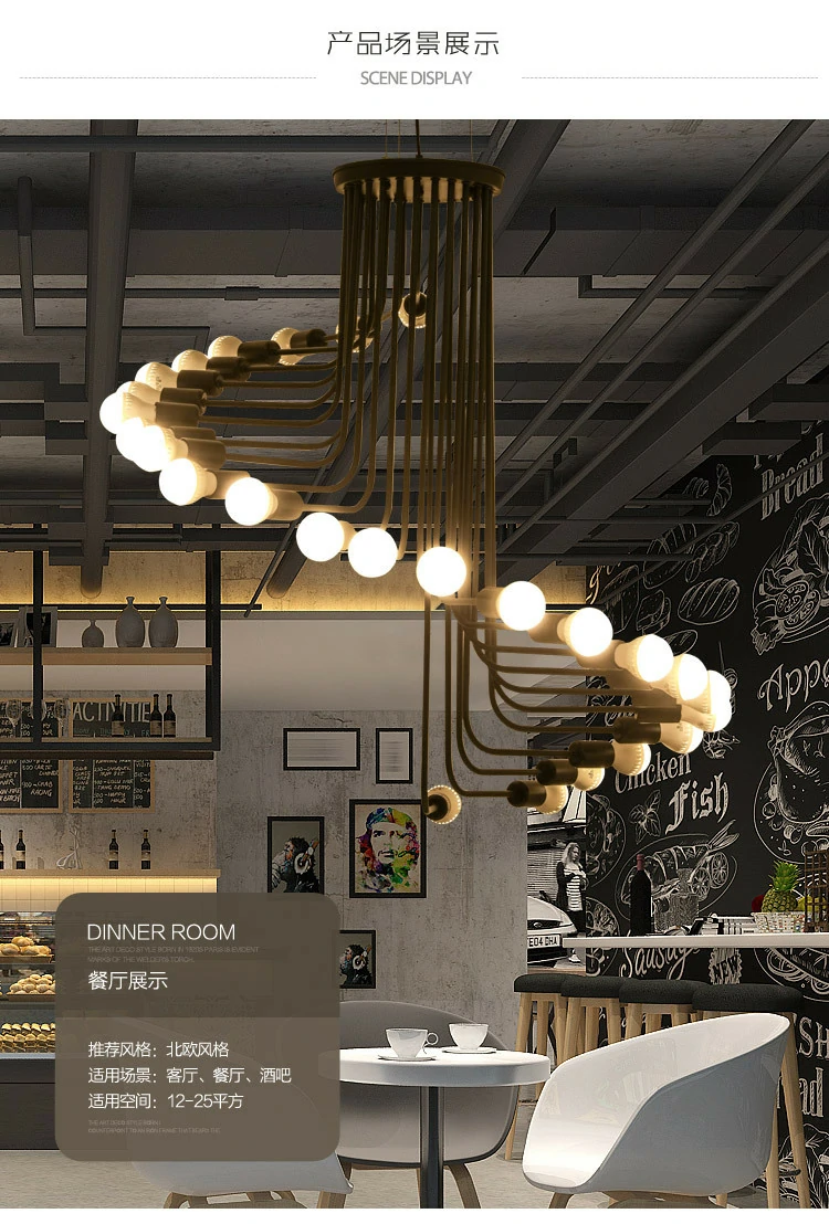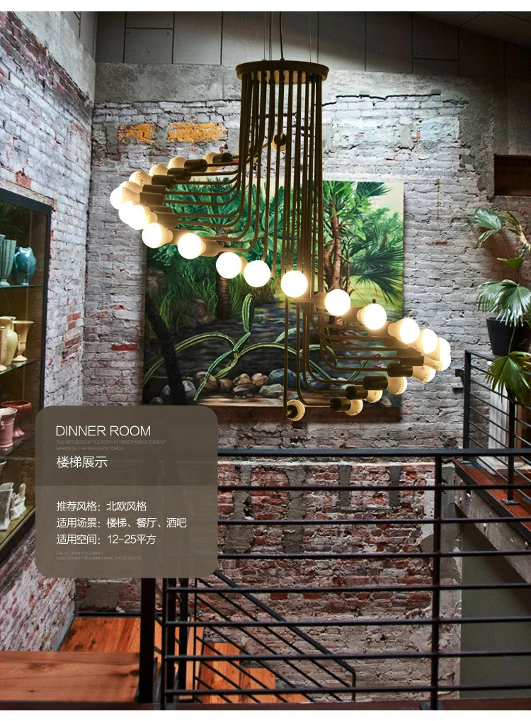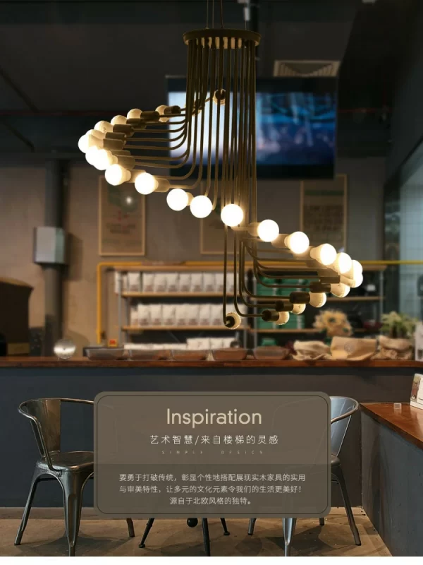 cafe bar spiral staircase chandelier Nordic style loft retro industrial style chandelier