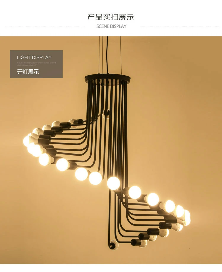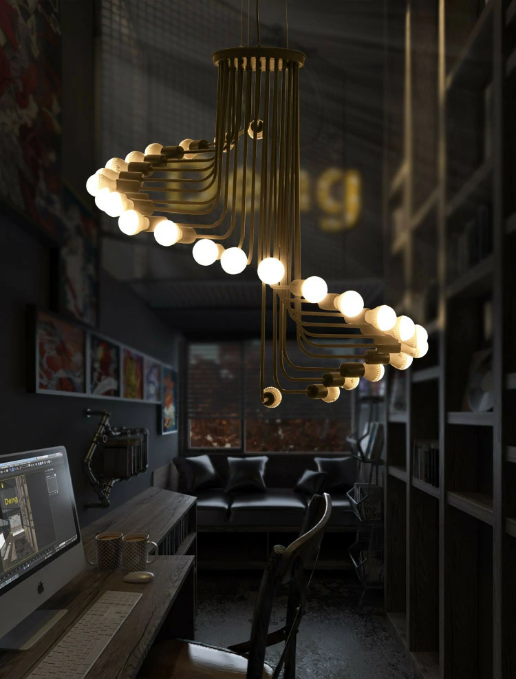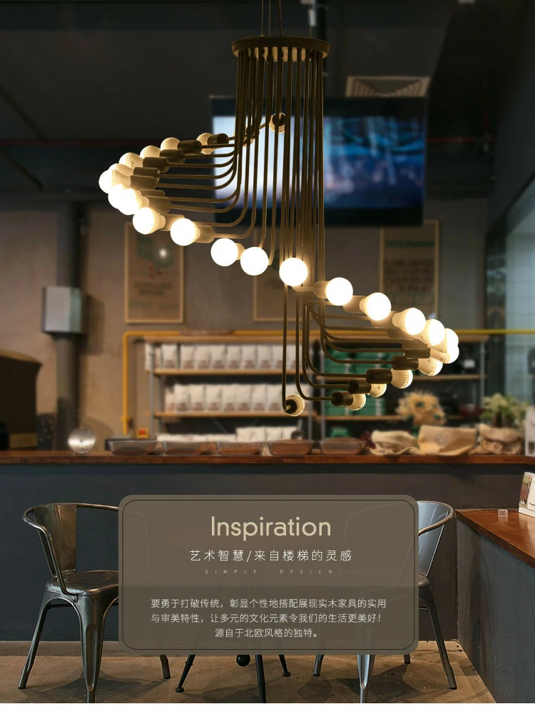 Cafe bar spiral staircase chandelier Nordic style loft retro industrial style chandelier
