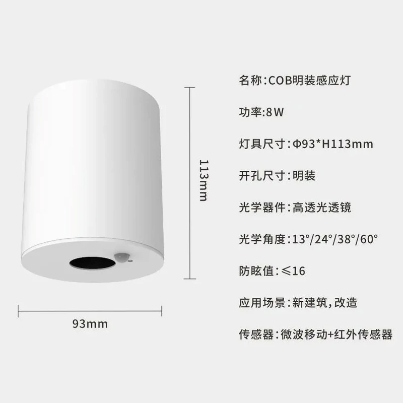 COB Human Sensing Surface Mounted Spot Light Infrared Light Sensing Dark Mounted Intelligent Entrance Entrance Stairway Corridor Anti glare Spot Light