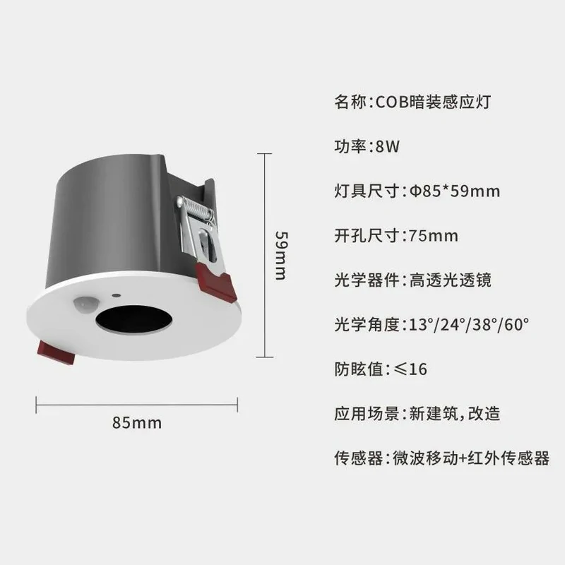 8w COB Human Sensing Surface Mounted Spot Light Infrared Light Sensing Dark Mounted Intelligent Entrance Entrance Stairway Corridor Anti glare Spot Light