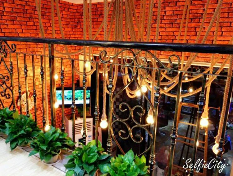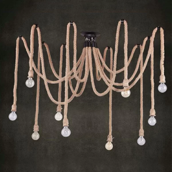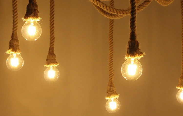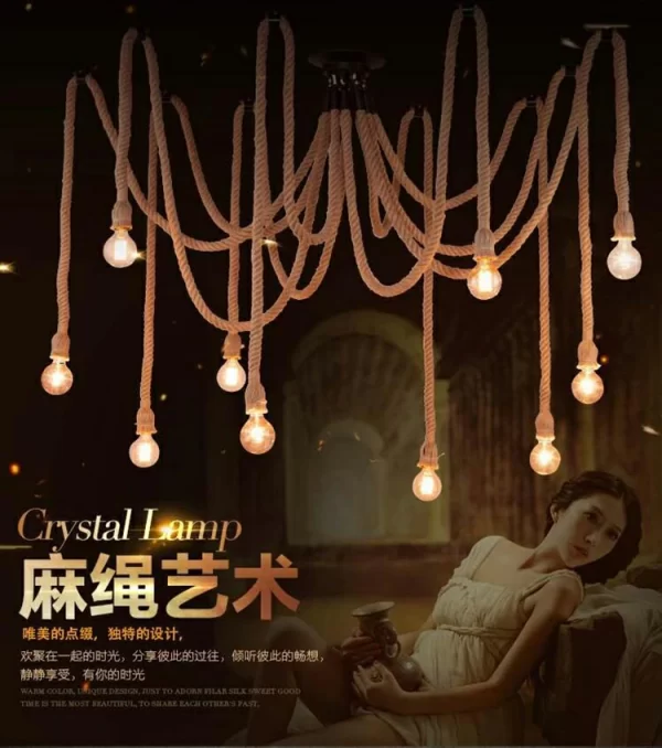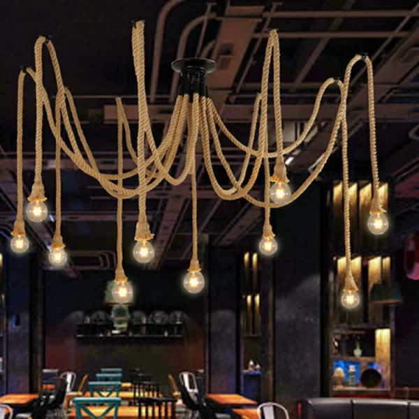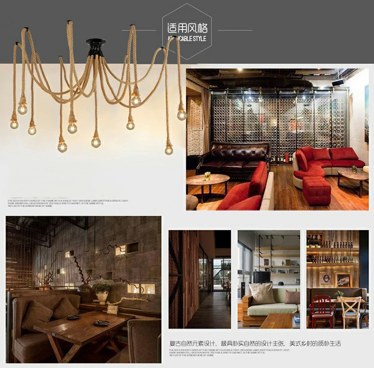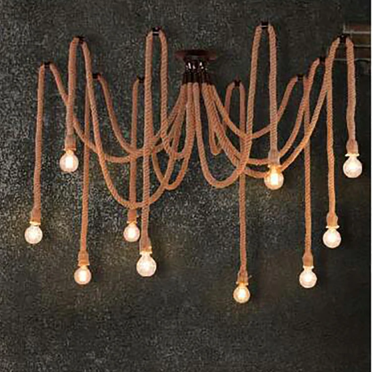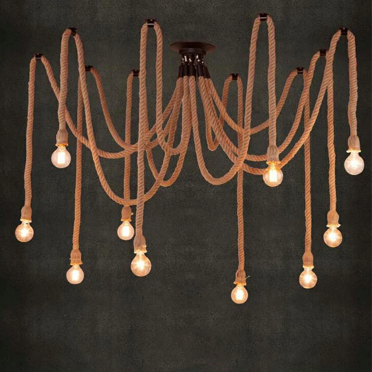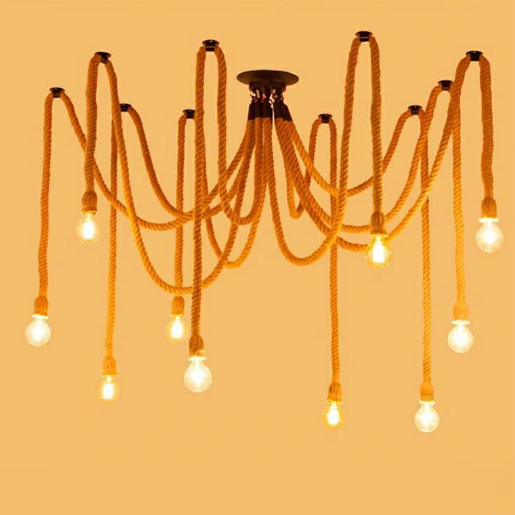 Creative chandelier with hemp rope retro industrial style office clothing store restaurant spider multi head hemp rope lamp