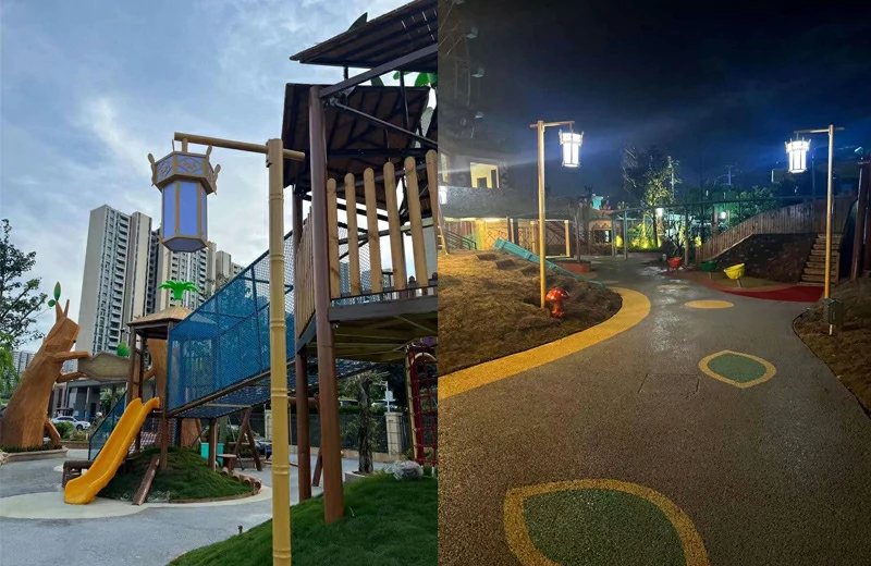 Customized homestay, scenic area, cultural tourism, bamboo festival landscape lights, community garden design simulation, bamboo elements, courtyard lights, street lamps