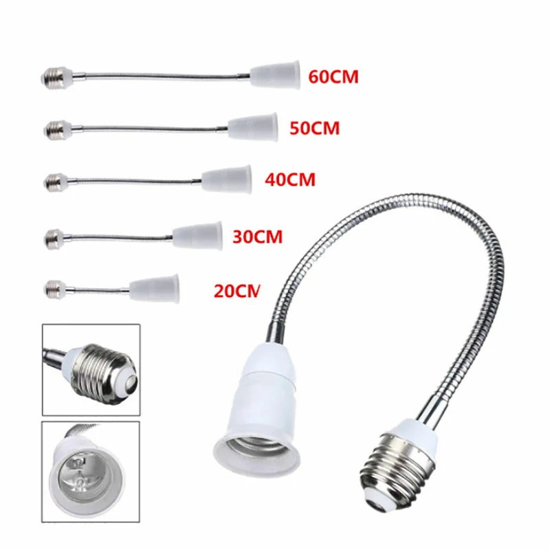 E27 LED Light Bulb Lamp Holder 20/30/40/60CM Flexible Extension Adapter Socket For Lamps Lighting Accessories