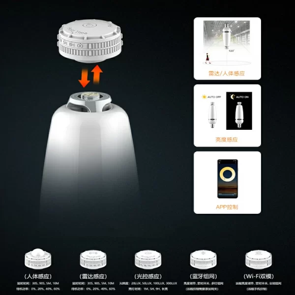 8. SNC E40 LED Bulb Retrofit LED warehouse lights have been resolved the heat sink issue reasonably, 100W LED warehouse light we use fin-shape aluminum heatsink built-in, LED Corn Light, there is cooling fan inside the light (the cooling fan have 100000hours lifetime), which lengthens life span to achieve the purpose of saving energy, protecting environment and reducing emissions.