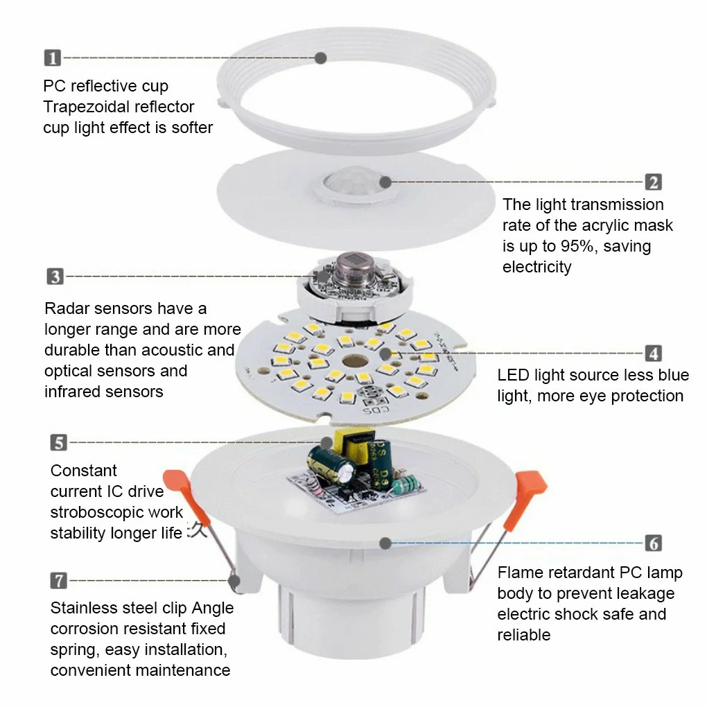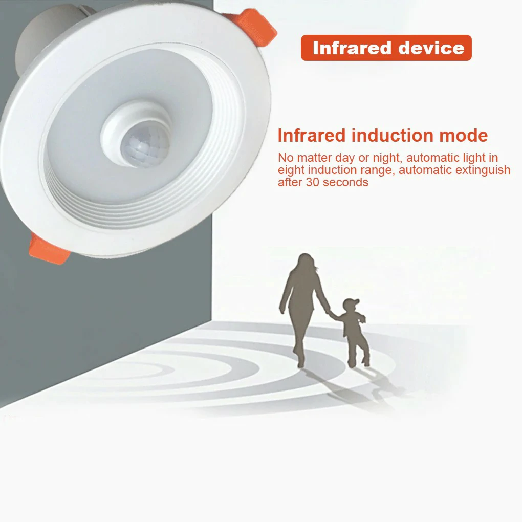 Light Human Body Induction LED Automatic Motion Sensor Embedded Lamp AC85-265V Spotlight Emergency Lighting Downlight