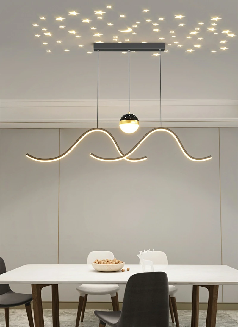 Long Bar Dining Hanger Modern Intelligent LED Restaurant Light Minimalist Creativity Full Sky Star Bar Table Hanger Front Desk Art Luminaire