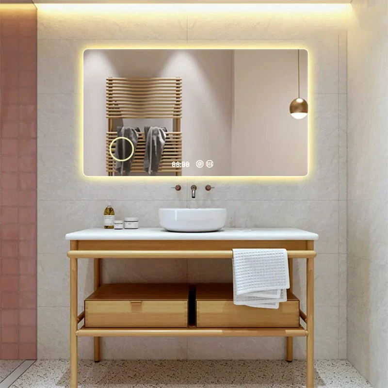 Modern wall mounted bath vanity smart mirror with led lights for hotel home bathroom