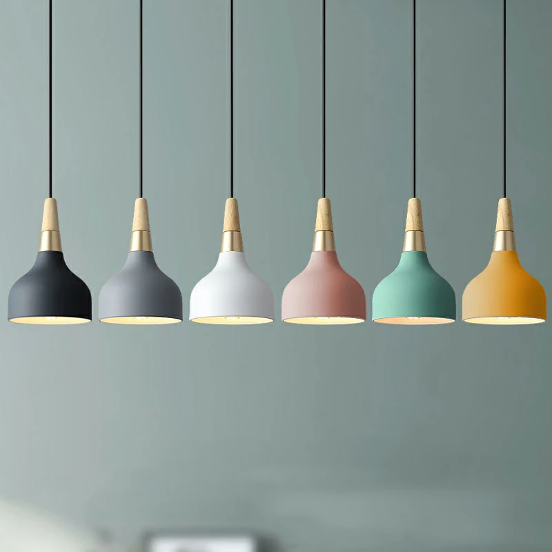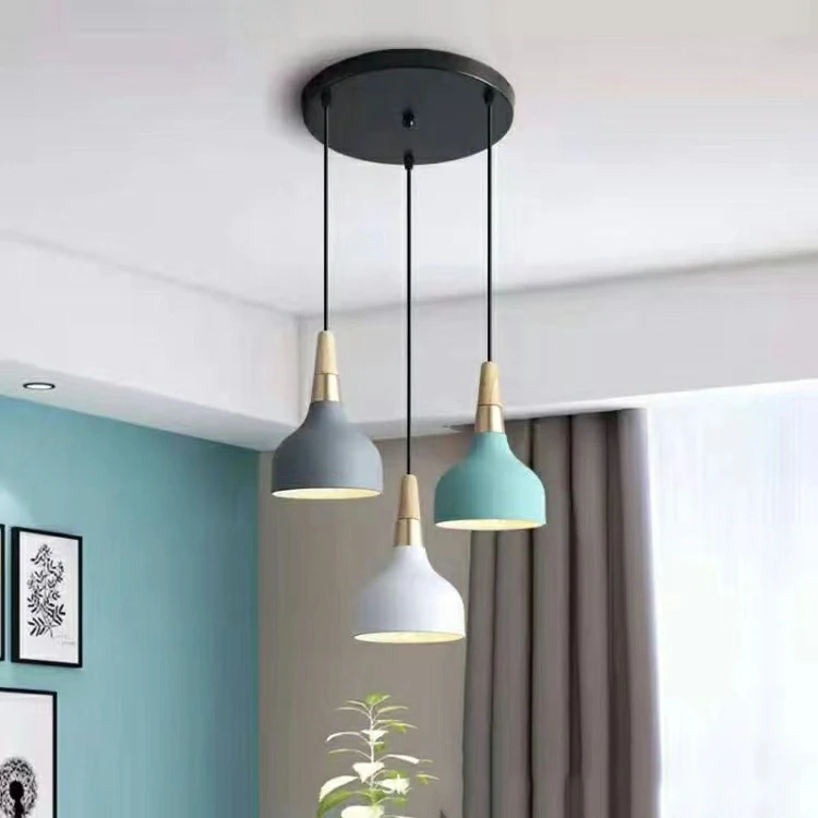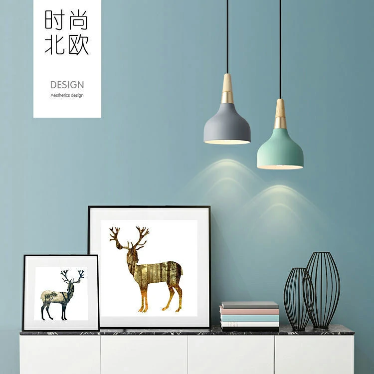 Nordic chandelier restaurant new led lights single head circular lamp modern minimalist Macaron art bar bedside chandelier