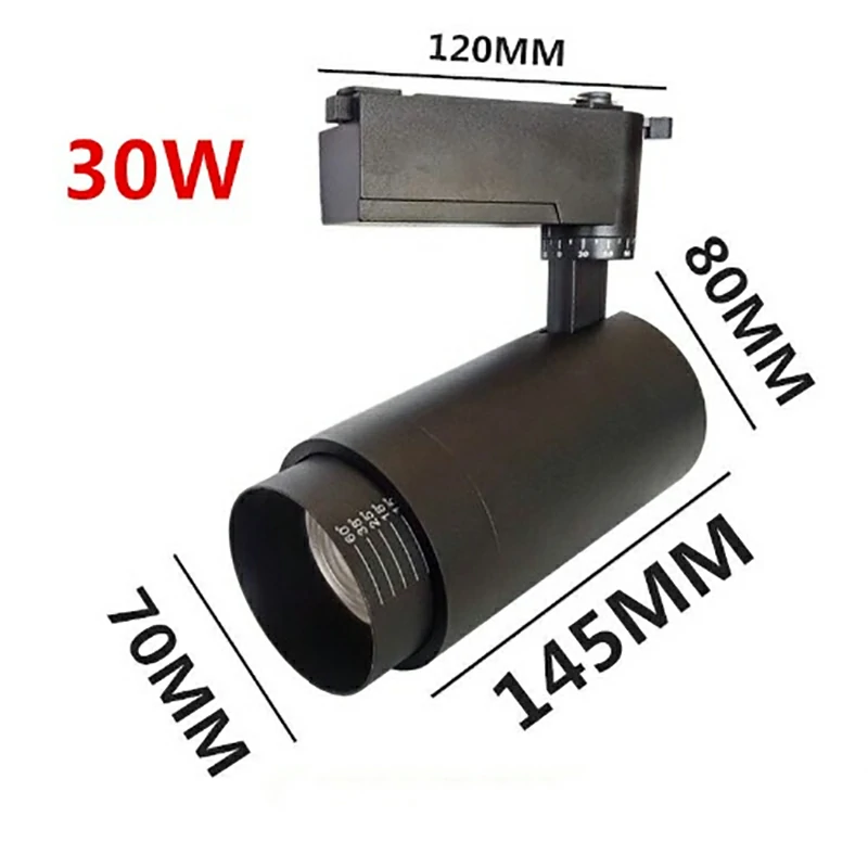 Zoomable 30W LED Track Light Dimmable Rail Spot Lighting Fixtures Spotlights Zoom Track Lamp for Clothing Shop Livingroom