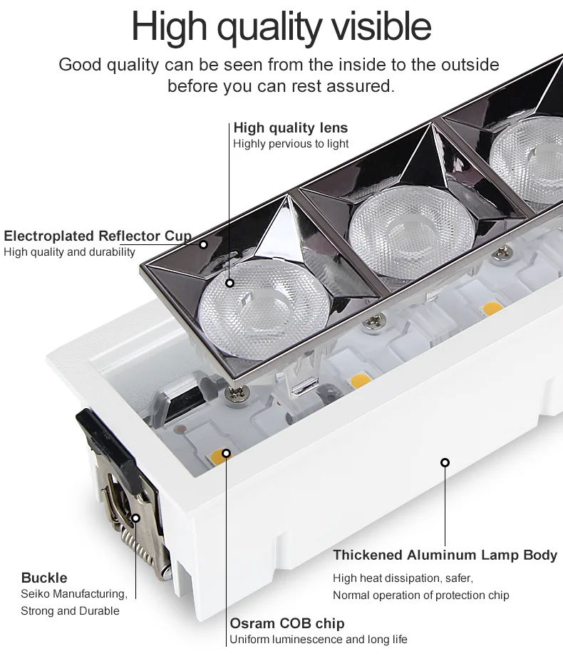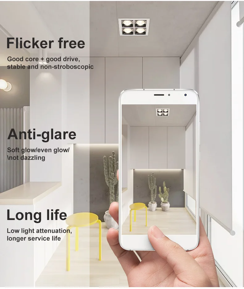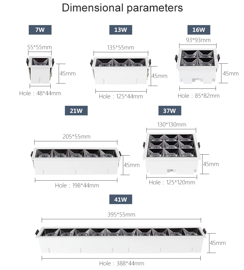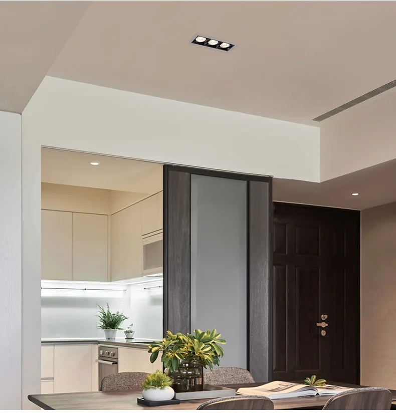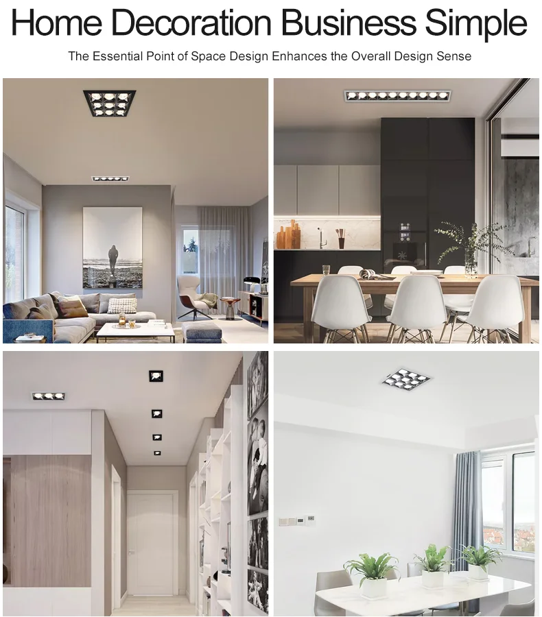 LED ceiling lights are lighting fixtures embedded in the ceiling, utilizing LED light sources. They are characterized by energy efficiency and provide even, soft light, making them ideal for shopping malls, hotels, jewelry counters, and upscale residential settings. The light source is concealed, providing no irritation to the eyes and maintaining the overall uniformity of the architectural decoration. The LED ceiling lights are designed with highly thermally conductive aluminum alloy and patented structural technology, ensuring excellent heat dissipation and a long service life. When installed, they need to be embedded in the ceiling, and the hole size must match the size of the light body. LED ceiling lights are an ideal replacement for traditional tungsten halogen and metal halide lamps, suitable for key lighting locations such as car exhibitions, jewelry displays, high-end clothing, professional windows, and counters.